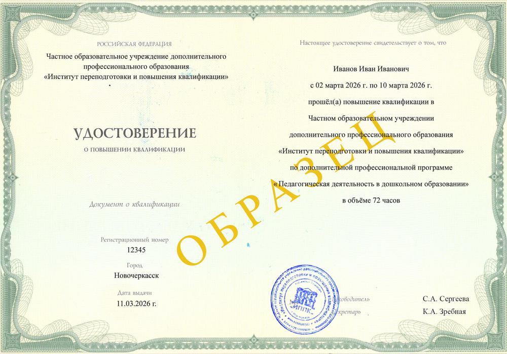 Документ: Удостоверение установленного образца